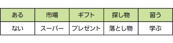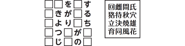 下の枠にある漢字を左の□に当てはめて、ことわざ、慣用句を五つ作ってください。すると、漢字が三つ余ります。余った漢字でできる慣用句は何でしょう?