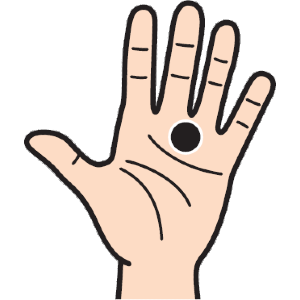 手のひら側で、中指と薬指の付け根から1センチほど下がった辺り。手を支えるように持ち、親指で上下に刺激しましょう。