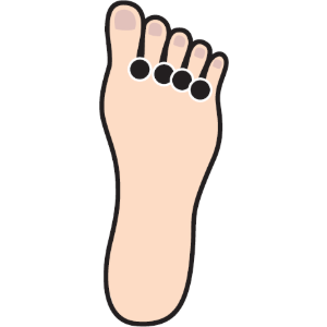 足の甲側で、指の股。親指と人さし指で挟み、指先に向かって引っ張ってはパッと離すという動作を、指先が温かくなるまで続けましょう。