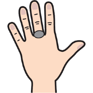 中指の付け根の辺り。親指で優しく上下するように刺激しましょう。