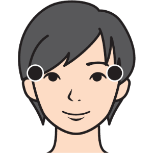 こめかみのやや目尻寄りのくぼみ。親指を当て、他の指で頭を支えるようにしながら、痛気持ちいい程度の強さで左右同時に30回ほど刺激しましょう。